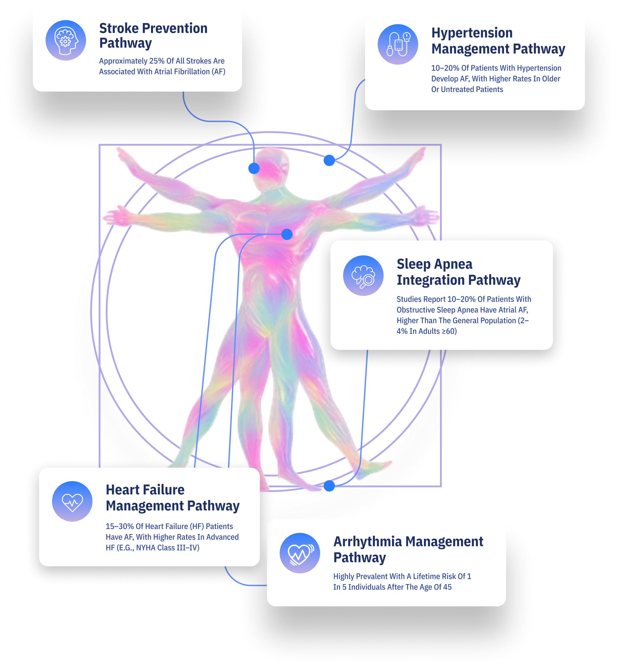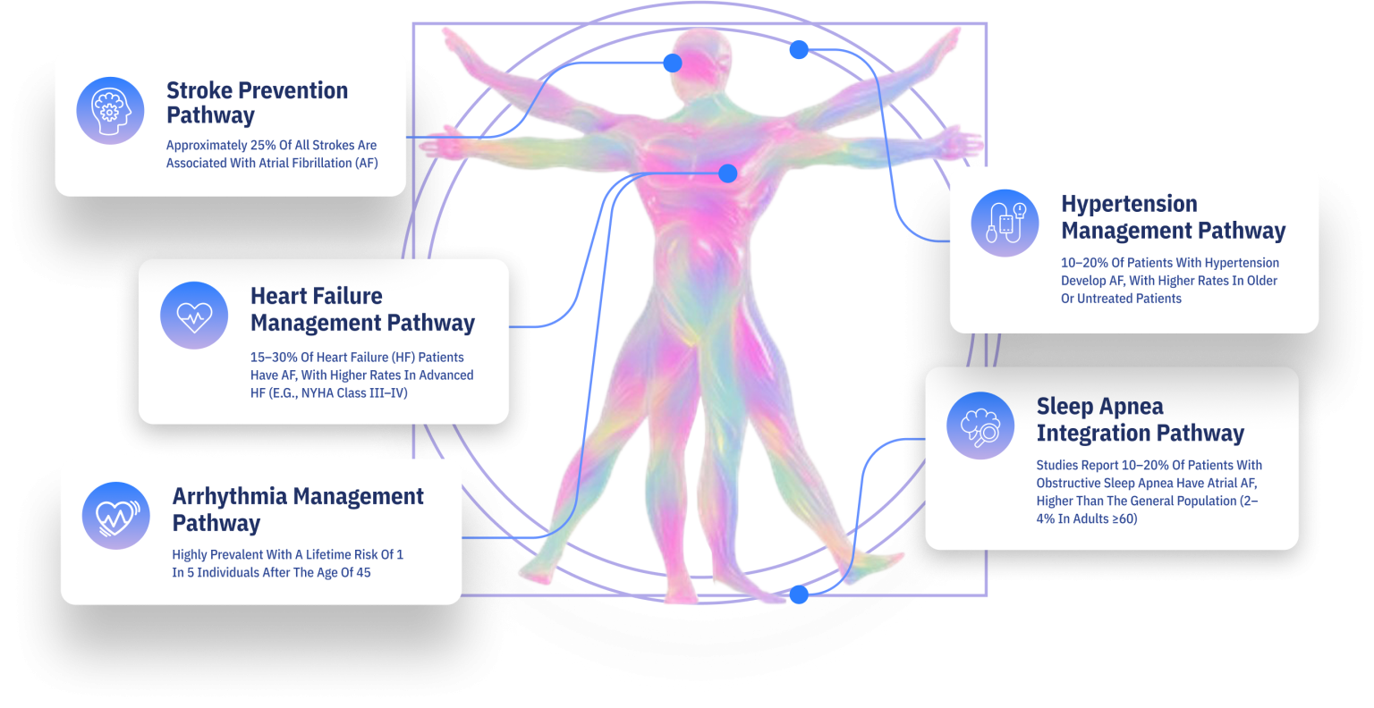 IronRod’s clinical pathways integrate monitoring, diagnostics, and intervention protocols across cardiovascular conditions, recognizing their interconnected nature.
